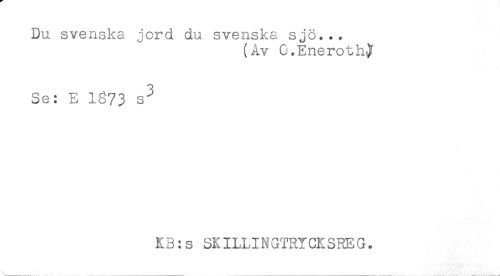//// Du svenska jord du svenska sjö... //// (Av C.Eneroth^ //// Se: E 1^73 s^ //// K3:s SKILLINGTRYCKSREG. ////