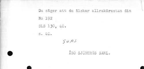 //// ^ Du säger att du ålskar allrakärestan din ^ //// No 192 //// ^ SLS 130, 40. //// ; S. 40. //// ) ^ ÅBO SJÖBERGS SAML. ////