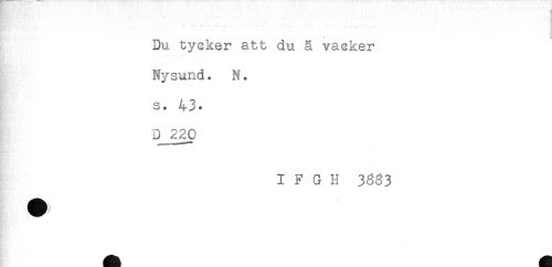 //// --'.' . . . //// Du tycker att du å vacker //// Nysund. N. //// s. 43. //// D 220 //// I F G H 3883 ////