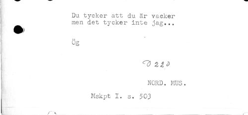 //// Du tycker att du är vacker //// ^^ men det tycker inte jag... //// * + //// Og //// ^ 2j //// NORD. MUS. //// Mskpt 1. s. 503 ////
