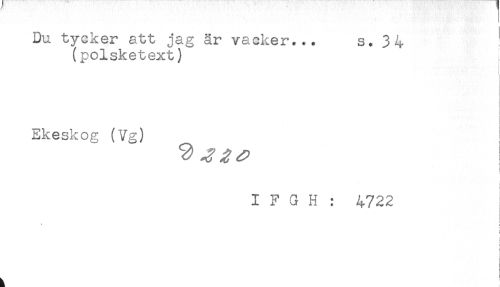 //// Du tycker att jag är vacker... s. 3 4 //// (polsketext) //// t //// Ekeskog (Vg) ! //// ] //// i //// C //// I F G H : 4722 //// t //// i ////