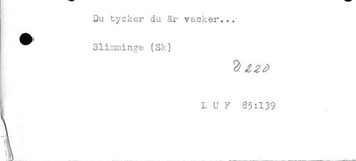 //// Du tycker du år vacker. . //// ^ Slimminge (Sk) //// I L u F 35:139 //// tsKt //// \ ////