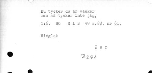 //// Du tycker du är vacker //// men så tycker inte jag, //// 1:6. BO S L S 99 s.3g. nr 61. //// Ringlek //// ABC //// _ ////
