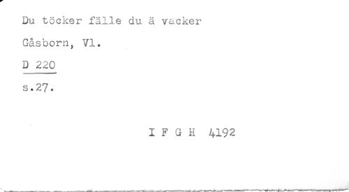 //// Du töcker fälle du ä vacker //// Gås bom, VI. //// D 220 //// s.27. //// I F G H 4192 ////