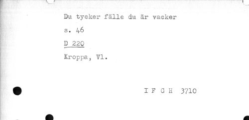 //// Du tycker fälle du är vacker //// s. 46 //// D 220 //// * " * //// Kroppa, VI. //// ^ I F G H 3710 ////