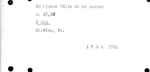 //// Du tycker fälle du är vacker //// v! * //// . //// s. 27,2$ //// E^220_ //// St.Råda, VI. //// I F G H 37^1 //// Hr ^^^^^ ////