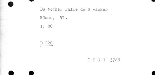 //// Du töcker fälle du ä vacker //// Råmen, VI. //// s. 30 //// H //// D 22C_ //// H* //// I F G H 3788 ////