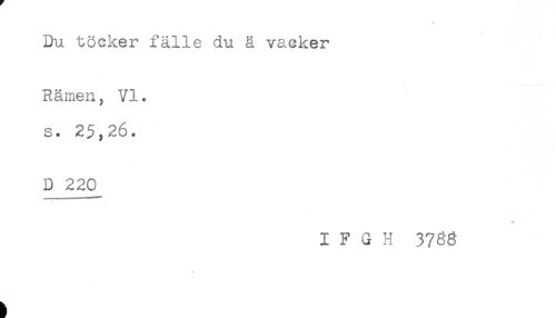 //// Du töcker fälle du ä vacker //// Rämen, VI. //// s. 25,26. //// D 220 //// I F G H 3788 ////