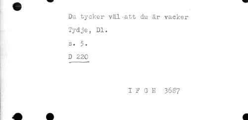 //// Du tycker väl-att du är vacker //// Tydje, Dl. //// s* 5 * //// D 220 //// I F G H 3637 //// M ////