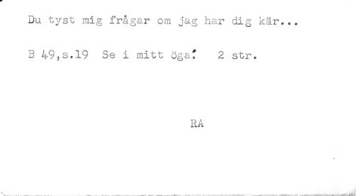 //// Du tyst mig frågar om jag har dig kär... //// B 49,s.19 Se i mitt öga? 2 str. //// RA //// __ ^ _ __. ////