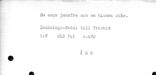 //// * " T *** -.. ' ' . . //// * * * * is* . ^ . . . . . . . ^ //// Du unga jungfru som en blomma står. //// < j //// önsknings-Sedel till framtid //// 1:8 SLS $41 s.490 //// ÅBO ////