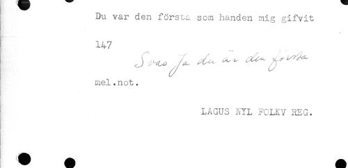 //// Du var den första som handen mig gifvit //// 147 //// mel.not. //// LAGUS NYL FOLK V REG. ////