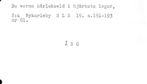 //// Du varma kärlekseld i hjärtats lagar, //// 8:4 Nykarleby S L S 19. s.191-193 //// nr 61. //// ÅBO ////
