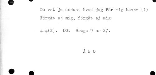 //// ^ Du vet ju endast hvad jag för mig haver (?) //// Förgät ej mig, förgät ej mig. //// 4:4(2). LO. Brage 9 nr 27. //// ÅBO //// B' ////