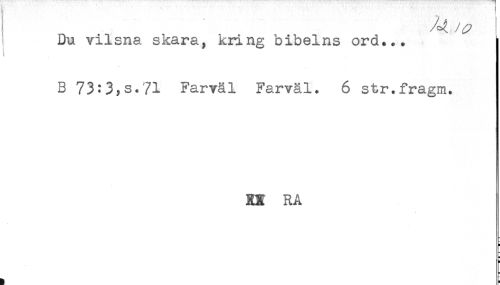//// /k //// i On vilsna skara, kring bibelns ord... //// B 73:3,s.71 Farväl Farväl. 6 str.fragm. //// XX RA ////