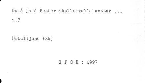 //// Du å ja å Petter skulle valla getter ... ! //// s.7 //// i //// i //// ) //// Örkelljuna (Sk) //// I F G H : 2997 ////
