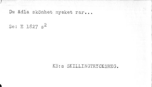 //// Du ädla skönhet myeket rar... //// Se: E 1827 s^ //// - //// t //// i //// i //// ) //// KB:s SKILLINGTRYCKSREG. //// < //// : //// < //// ^ ! ////