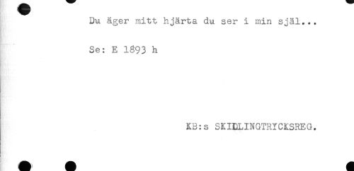 //// Du äger mitt hjärta du ser i min själ... //// R" //// Se: E 1893 h //// - //// KB:s SKIDLINGTRYCKSREG. //// ! ////