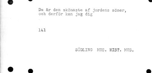 //// Du är den skönaste af jordens söner, //// och derför kan jag dig" //// * //// 141 //// SÖDLING MUS. HIST. MUS. ////