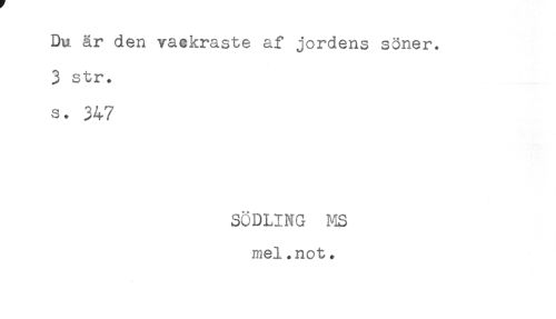 //// Du är den vackraste af jordens söner. //// 3 str. //// s. 347 //// SODLING MS //// mel.not. ////