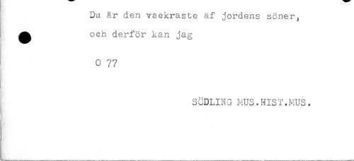 //// Du ar den vackraste af jordens söner, //// ^ och derför kan jag //// o 77 //// SÖDLING MUS.HIST.MUS. //// ! //// c; ^ . < ////