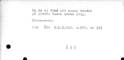 //// Du är ej dömd att ensam vandra //// på livets ökens mörka stig. //// Minnesvers. //// 1:4 Abo S.L.S.$42. s.566. nr 323 ////