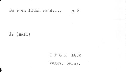 //// Du e en liden skid.... s 2 //// i //// i //// i //// i //// Ås (Rall) //// I F G H 1452 //// Vaggv. barnv. ////