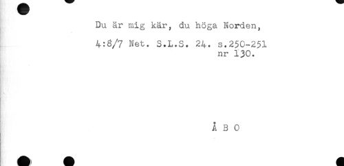//// Du är mig kär, du höga Norden, //// , //// 4:8/7 Net. S.L.S. 24. s.250-251 //// nr 130. //// ÅBO ////