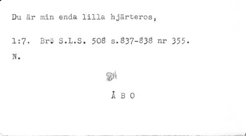 //// Du är min enda lilla hjärteros, //// 1:7. Br$ S.L.S. 508 s.837-838 nr 355. //// N. //// ÅBO //// ___ ____ _ _J ////