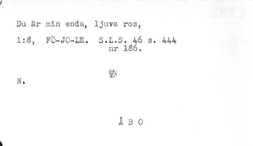 //// Du är min enda, ljuva ros, //// 1:8, FÖ-JO-LE. S.L.S. 46 s. 444 //// nr 186. //// N. //// f ////