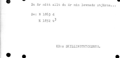 //// Du är mitt allt du år min levnads stjärna... //// Se: N 1863 d //// E 1852 t3 //// KB:s SKILLINGTRYCKSREG. //// jå! ) _ //// H in ////