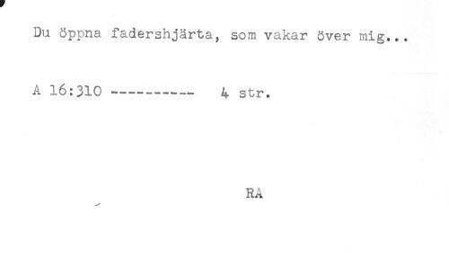 //// Du öppna fadershjärta, som vakar över mig... //// A 16:310---^ str. //// ' //// RÅ ////