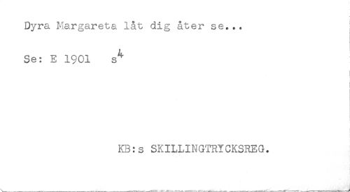 //// Dyra Margareta låt dig åter se... //// Se: E 1901 s^ //// j //// i //// KB:s SKILLINGTRYCKSREG. ////