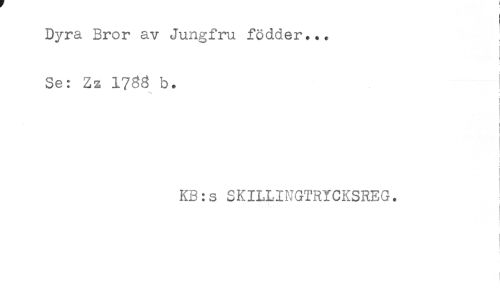 //// ! //// Dyra Bror av Jungfru födder... //// Se: Zz b. //// i //// t //// t //// 1 //// ! //// t //// KB:s SKILLINGTRYCKSREG. //// ! //// [ ////