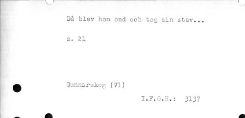 //// Då blev hon ond och tog sin stav... //// s. 21 //// ^ Gunnarskog (VI) //// I.F.G.H.: 3137 ////