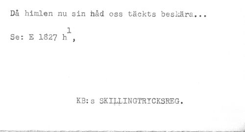 //// Då himlen nu sin håd oss täckts beskära... //// 1 //// Se: E 1827 h , //// KB:s SKILLINGTRYCKSREG. ////