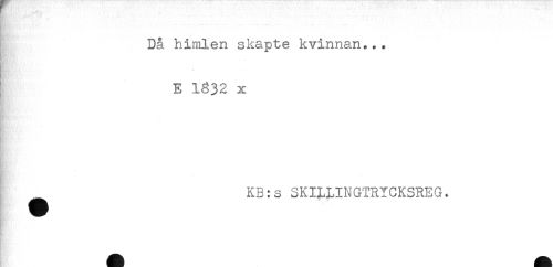 //// . . //// ... //// Då himlen skapte kvinnan... //// ; E 1632 x //// - //// KB:s SKILLINGTRYCKSREG. ////