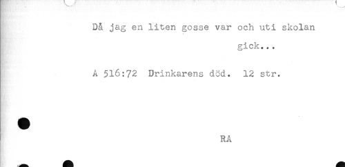//// Då jag en liten gosse var och uti skolan //// gick... //// A 516:72 Drinkarens död. 12 str. //// - //// t RA ////