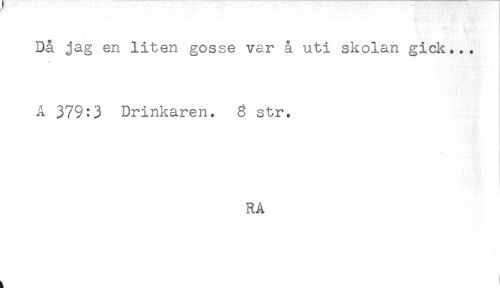 //// Då jag en liten gosse var å uti skolan gick... //// ? //// A 379:3 Drinkaren, g str. //// RA ////