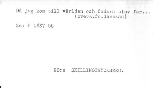 //// Då jag kom till världen och fadern blev far... //// (övers.fr.danskan) //// Se: E 1387 bb ////