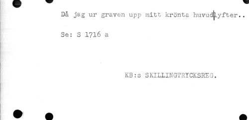 //// Då jag ur graven upp mitt krönta huvudsyften.. //// Se: S 1716 a //// KB:s SKILLINGTRTCKSREG. ////