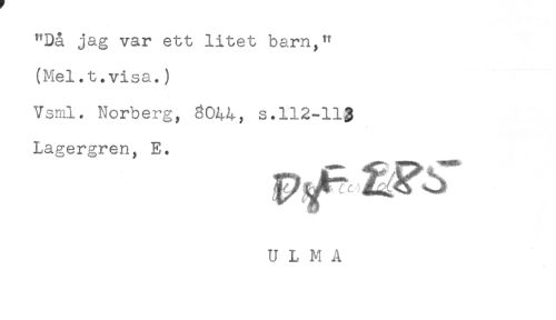 //// "Då jag var ett litet barn," //// (Mel.t.visa.) //// Vsml. Norberg, 8044, s.112-112 //// Lagergren, E. ////