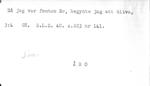 //// Då jag var femton är, begynte jag att bliva, //// 3:4 GE. S.L.S. 40. s.223 nr 141. //// < //// t //// ! //// ) //// i //// J //// ABO //// < //// t //// t //// f //// t //// t //// t //// k ! ////