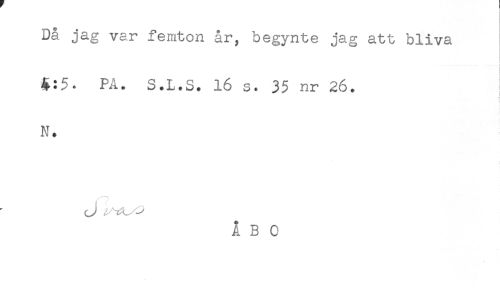 //// Då jag var femton år, begynte jag att bliva //// j //// 4:5. PA. S.L.S. 16 s. 35 nr 26. //// -i //// ! //// ! //// N. ////
