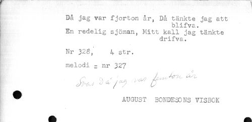 //// -* * ^ * t< //// Då jag var fjorton år, Då tänkte jag att //// blifva. //// En redelig sjöman, Mitt kall jag tänkte //// drifva. //// Nr 328, 4 str. //// melodi = nr 327 //// I / - " //// ; -, - '' , ' //// ^ - - , ^ " ^ ////