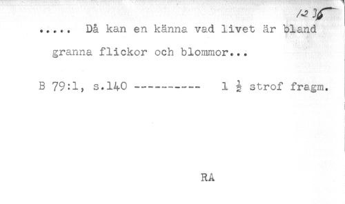 //// ..... Då kan en känna vad livet är bland i //// ' * i //// . < - ',* //// granna flickor och blommor... //// B 79:1, S.140 - 1 ^ strof fragm. //// t ////
