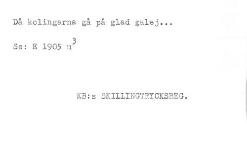//// Då kolingarna gå på glad galej... //// Se: E 1905 u^ //// KB:s SKILLINGTRYCKSREG. ////