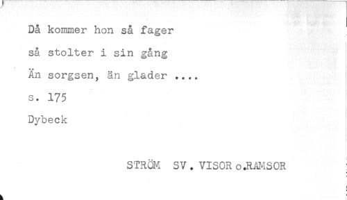 //// Då kommer hon så fager //// . //// så stolter i sin gång //// Än sorgsen, än gläder .... //// s. 175 //// Dybeck ////