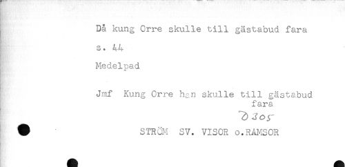//// Då kung Orre skulle till gästabud fara //// s * //// b*', t'^ //// Medelpad //// Sr * ' //// R/.-i. //// Jmf Kung Orre han skulle till gästabud //// fara //// BX; - ////