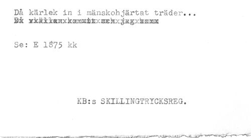 //// Då kärlek in i mänskohjärtat träder... //// Se: E 1375 kk //// KB:s SKILLINGTRYCKSREG. ////